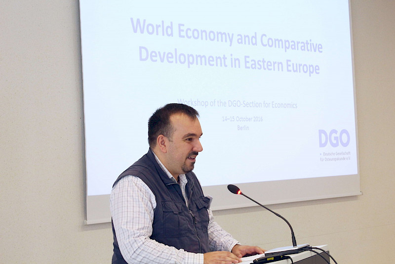 In weiteren Vorträgen zu den Auswirkungen des wirtschaftlichen und institutionellen Wandels diskutierten die Referenten die Risikoteilung zwischen den Regionen Russlands (Jarko FIDRMUC, Zeppelin Universität Friedrichshafen), die Arbeitsmigration innerhalb und zwischen den Wirtschaftssektoren Polens (Stanisław CICHOCKI, Universität Warschau) und die politischen Maßnahmen zur Entwicklung des Agrarsektors in Georgien (Phatima MAMARDASHVILI, Universität Tiflis).