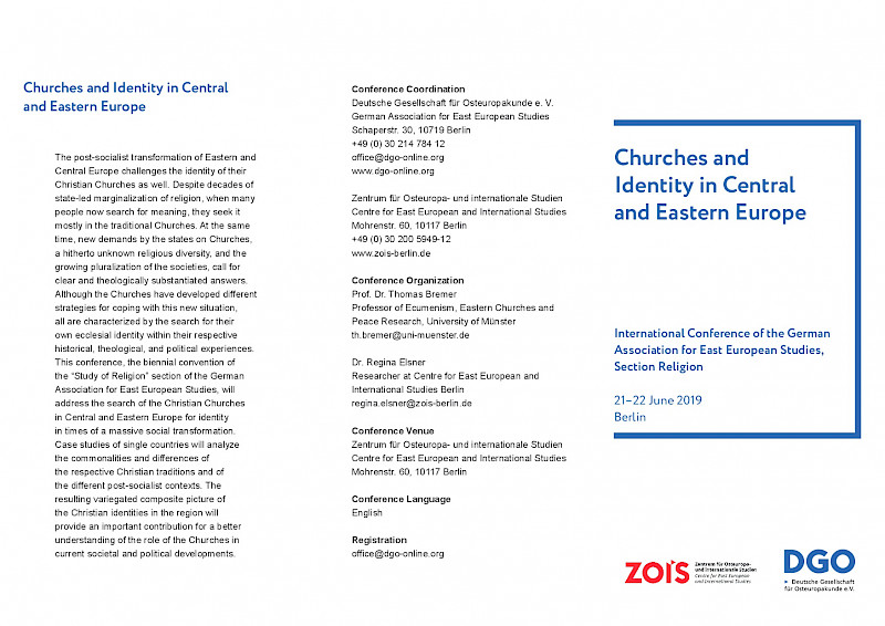 This conference, the biennial convention of the “Study of Religion” section of the German Association for East European Studies, will address the search of the Christian Churches in Central and Eastern Europe for identity in times of a massive social transformation. Case studies of single countries will analyze the commonalities and differences of the respective Christian traditions and of the different post-socialist contexts. The resulting variegated composite picture of the Christian identities in the region will provide an important contribution for a better understanding of the role of the Churches in current societal and political developments.