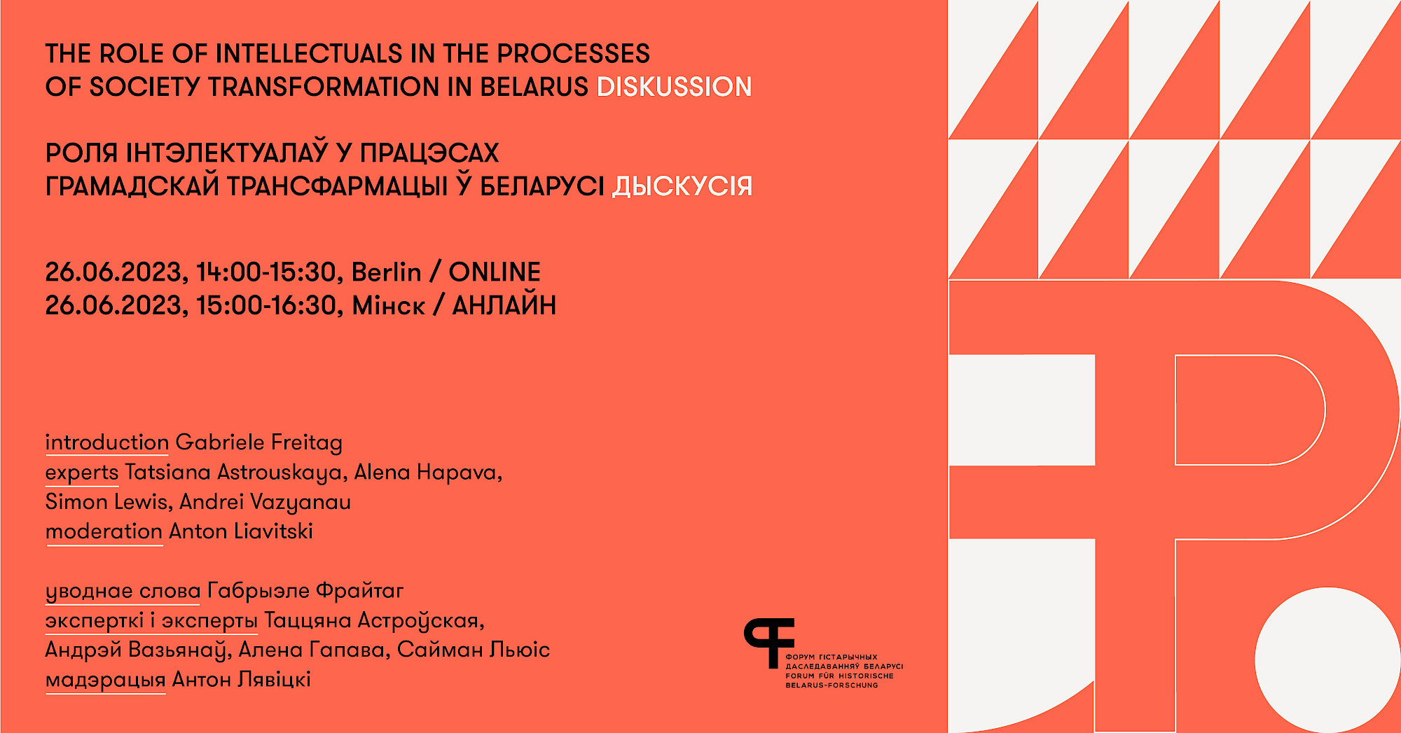 У нашай дыскусіі мы збіраемся абмеркаваць ролю інтэлектуалаў у палітычным і культурным працэсе сучаснай Беларусі. Для гэтага мы засяродзім увагу на структурных фактарах, што падрыхтавалі глебу для падзей 2020 г., і на асноўных рухаючых сілах пратэстаў. Якую ролю адыгралі традыцыйныя інтэлектуальныя асяродкі (інтэлігенцыя) у крызісе аўтарытарнай легітымнасці? Які ўнёсак у падзеі 2020 года зрабіў беларускі дэмакратычны рух (“старая апазіцыя”), які існаваў у 1989–2020 гадах? Як традыцыйныя паняцці і каштоўнасці інтэлігенцыі суадносяцца з іншымі ідэнтычнасцямі пратэсту: рабочым рухам, феміністычным рухам, новым сярэднім класам? І як ідэалагічны і палітычны ландшафт Беларусі трансфармаваўся пасля паўнамаштабнага ўварвання Расіі ва Украіну ў 2022 годзе?