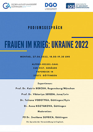 Das Podiumsgespräch, das sich sowohl an Hochschulmitglieder als auch an ein breiteres lokales Publikum richtet, wird einen Überblick über den Krieg in der Ukraine liefern, wobei der Schwerpunkt auf den vielfältigen Erfahrungen und Rollen ukrainischer Frauen liegt. Die vier eingeladenen Expertinnen, darunter zwei ukrainische Wissenschaftlerinnen, werden sich mit den Themen der Betroffenheit, Resilienz und des Empowerments ukrainischer Frauen im Krieg befassen. Auch die Migration der Frauen mit ihren Kindern nach Deutschland und die Unterstützung durch die deutsche Gesellschaft, namentlich durch Göttinger Bürgerinnen und Bürger, werden im Mittelpunkt der Diskussion stehen.