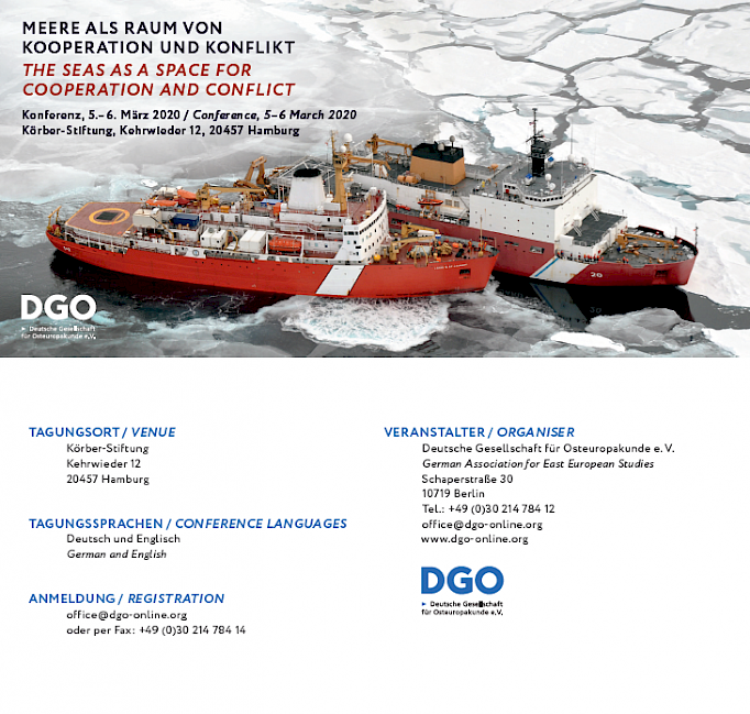 Eurasien ist die größte Landmasse und die Russische Föderation der größte Flächenstaat der Welt. Aber die Bedeutung der Meere für Politik, Wirtschaft, Sicherheit und Kulturtransfer im Osten Europas bleibt oft unbeachtet. Sie wird erst sichtbar, wenn es Konflikte um Grenzen, Ressourcen, Artenvielfalt und Umweltschutz gibt. Die DGO stellte deshalb die Beschäftigung mit den Meeren im Osten Europas in den Mittelpunkt ihrer Jahrestagung in Hamburg, die sich vor allem mit der Frage nach Kooperationen und Konflikten beschäftigte.